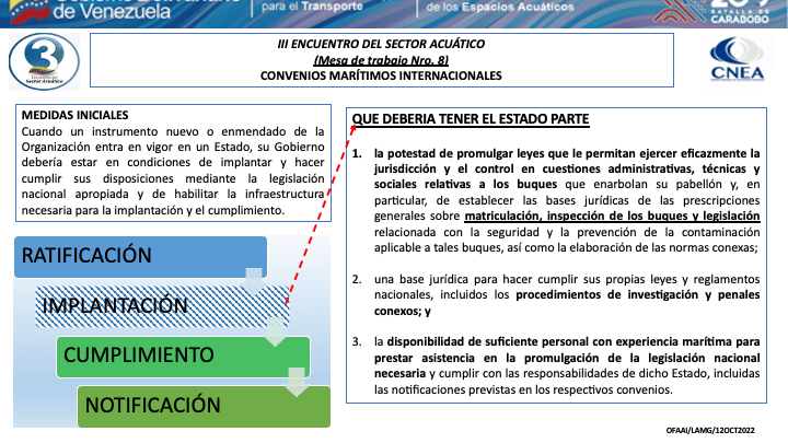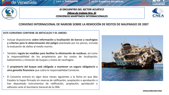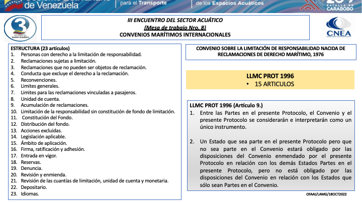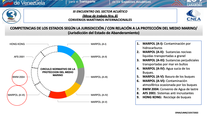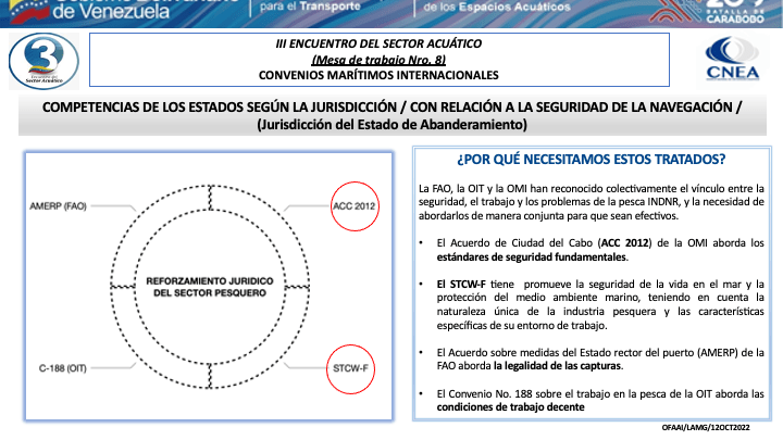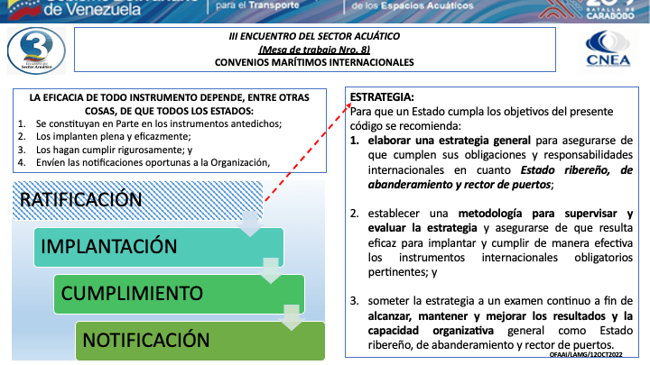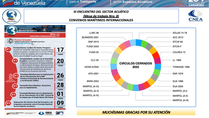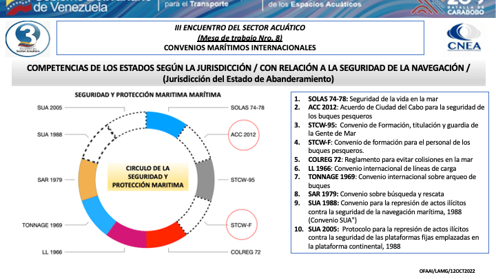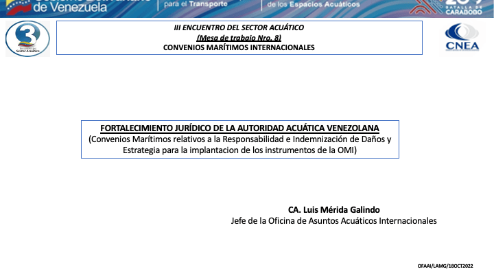 Presentacion del CA. Luís Mérida Galindo, Presidente del Comite de Coordinación del Consejo Nacional de los Espacios Acuaticos (CNEA) y Presidente de la mesa de Convenios Marítimos Internacionales del III Encuentro del Sector Acuático